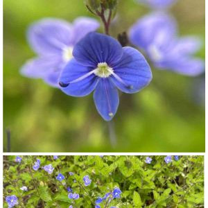 ベロニカです。 ジョージアブルーか、オックスフォードブルーか… かなり昔、園芸店からお迎えしました🏡 這うように広がっていますよ🎶 アップで見ると、オオイヌノフグリみたいですけど、オオイヌノフグリ=ベロニカなんだそうです。 穂のようなベロニカとご親戚だなんて、ちょっと信じられないです😄