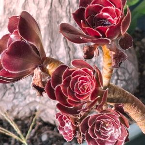 🟤黒法師(クロホウシ)🟤 別名アエオニウム ベンケイソウ科 地中海沿岸原産 多肉植物 冬に成長し、夏は休眠しているそうだ 種類もいろいろあるのかな。 近所の店先に忘れられたように転がって出しっぱなしになってる。冬はしまうのだろうか? 薔薇のようなの形の赤茶色の多肉植物。 お洒落さんね。