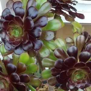 黒法師 22年2月くらいにお迎えしたのが↗️ 今や二株になり嫁に出した子も。一年半でかなり大きくなってくれました💕また沢山脇芽も付いてるので挿し木にしようと思ってますが増えすぎても…なあ…?🙄と悩み中💧😕💭 ベンケイソウ科アエオニウム属 夏冬弱し 夏は日陰で水やり控えめ 春先に花。しかし花が咲くと枯れてしまう⁉️なんと😱気をつけなければ💦
