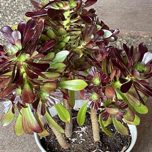 今日もお疲れさまでした😌💓 暑かったですね☀️😵💦 🏷️9日は黒法師の日参加者します🔰 お隣さんで見かけました🎵 夏だからか小さく咲いています💠 茎の上部にロゼット状の葉を付け、 まるで花が咲いているような 株立ちで上に伸びて成長します。 光沢のある黒紫の葉は特徴的です。 冬型の多肉植物の代表ともいえる、 アエオニウムの中でも最も ポピュラーな品種です。 冬に成長し夏は休眠します。