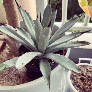 初めてのアガベ。近くの園芸店で2割引きで購入。 名前はかわいいが棘が凶器。 さっそく手と足を負傷。