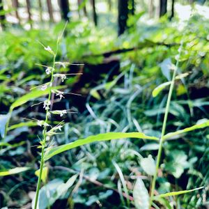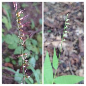 コチヂミザサ イネ科 Poaceae(イチゴツナギ属名Poa ←牧草のギリシャの古名"paein"に由来) チヂミザサ属 Oplismenus(ギリシャ語「武装した、芒のある」の意味) 属名にもありますが長い芒は特徴的ですよね。 最初に覚えたのがケチヂミザサのほうで、花軸に毛がなかったらコチヂミザサだよーという風に聞いた気がします。ただ、コチヂミザサは変種扱いとしてチヂミザサとも表記してあるんですね🤔 個人的にイネ科は好きなので、もっとちゃんとわかるようになりたいと思ってます🌾
