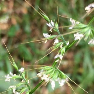 コチヂミザサ(小縮み笹) 無毛のコチヂミザサ🌿 AIがエダウチチヂミザサというので、調べてみたら、横枝がよく伸びてまばらに小穂がつくという。分布は暖かい地方で本州にはないが、このケチヂミザサは北海道から九州だ。 2023.10.24撮影