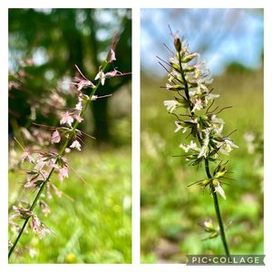 芒の長いチヂミザサの花が2種類咲いていました♡🌿 1️⃣ ケチヂミザサ 2️⃣ コチヂミザサ ケチヂミザサはその名前の通りに毛が多いですがコチヂミザサは無毛です。 笹の葉に似ているけれども葉の縁が縮れているのが名前の由来です。 イネ科 チヂミザサ属