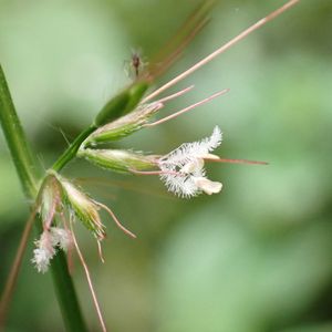 チヂミザサ コチヂミザサ 花弁がなく雄しべと雌しべが開出するイネの仲間♬ ブラシのようなのが雌しべの柱頭(ノ)・ω・(ヾ) 黄色いのが雄しべの葯🟡 茎に毛が生えていればケチヂミザサと呼ばれるけれど、これはつるつるしているので、コチヂミザサやね(*´ `*) ノギと呼ばれる針状の突起が伸びていて、熟すとこの先から粘液が出て、ひっつき虫となって種は運ばれていく🟤
