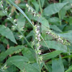 コチヂミザサというのだろうか。 追記 花穂に毛が多いのがチヂミザサ、毛が少ないのがコチヂミザサというらしい。写真では毛まで確認できないですね🙇♂️現時点では広義のチヂミザサとしておきます。 また、チヂミザサは芒の上に粘る露をだす。コチヂミザサは一種の臭がある。だそうです。(学生版牧野日本植物図鑑より)