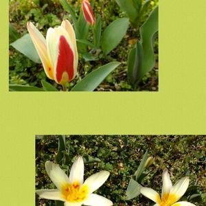 早咲きの原種チューリップ🌷 ザファースト♪✨ 日陰に居るのに早く咲いてくれました🌷 毎日夜閉じて朝開いてを繰り返します🤗 右下↘️は開いた様子 毎日夜閉じて朝開いてを繰り返します🤗 クリーム色に赤いラインが可愛い💕 背丈は低めです。