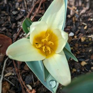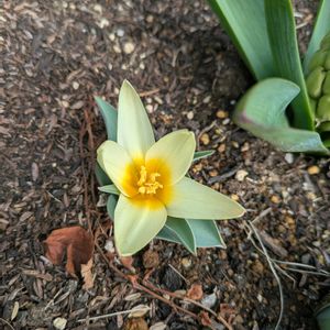 🎗️2025/03/11🎗️ ✾原種チューリップ ザファースト 極短茎 早咲きで2年目です! 第一号咲いてくれました。 去年は全然写真残せなかったので嬉しい!