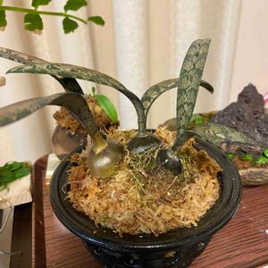 世界ラン展にて購入した蛇皮蘭。 これに似合うだろう鉢を入手出来たので植え替えました。 真っ黒なのがもっと増えるといいなあ〜🙌