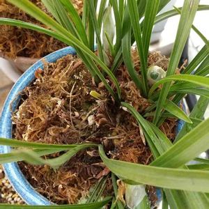 ㅤ 世界らん展 購入品 3 ㅤ ⚘ 日本春蘭 東の光 #和歌山ガーデン オレンジ色の花が咲く春蘭 展示品でオレンジ色の春蘭素敵だな〜 と見ていて帰り際にふらふらと覗いたお店で購入 水苔から鉢に植え替えてもらいました お花が見られるのは1年〜2年後らしいので 頑張ってお世話しよう 中国春蘭は香りがあって 部屋の中に入れておくとすごくいい香りですよ って言われたんだけれど オレンジ色の春蘭が欲しかったので 迷わず日本春蘭を(日本春蘭は香り無し)