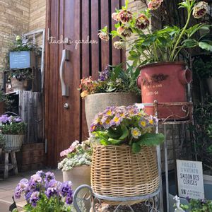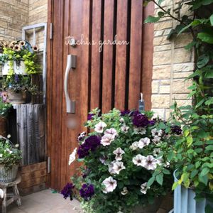 こんにちは☀️ ちょっと前の玄関前の様子です🌸 お花満開で賑やかです💕 今日も一日お疲れ様でした😊