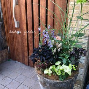 こんにちは☀️ 玄関先の寄せ植え🌸 パンビオから少しずつ夏花へ植え替え中です✨✨ 今日も一日お疲れ様でした😊