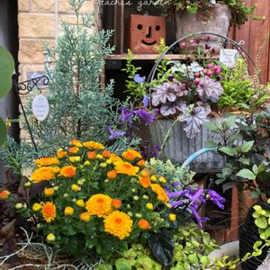 おはようございます☀ ハロウィンに合わせて作ったマムの寄せ植え🎃 いい感じに咲き出しました🌸 今日も素敵な1日をお過ごし下さい😊