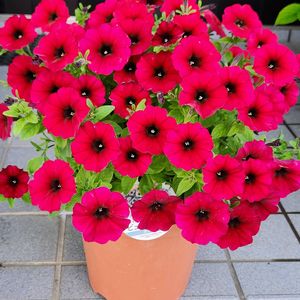 ペチュニア ビューティカル 冬越しビューティカルさんたちが 2回目の満開を迎えました あまり真ん丸じゃないですけど ④のサンセットオレンジだけ少し遅れていますが そろそろ切り戻しです