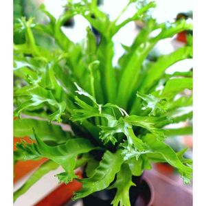Asplenium nidus Avis 🌱🌿💚😃 オオタニワタリのレズリー。🌿💚🏞️😊 綺麗な緑と枝分かれした葉先がたまらん…。🌿💚🤗 レズリー君、正しく緑の鳥の巣。Nidus Avisは、ラテン語で鳥の巣を意味するらしい。🐦🧺😁 冬場が心配だが、綺麗な緑を保ってよ。ヨロシコ❗👍👍🍃🍃🌿🌿🐦🧺🤗🤗👻👻