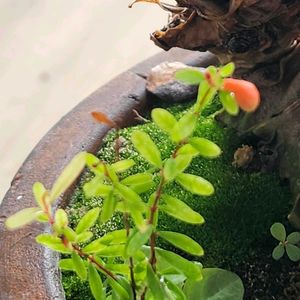 こんばんは😃🌃 金の成る木の根元から 何とビックリ‼️ 不思議な赤い実? 何と、小さなザクロの蕾 でした🧐 何と言うことでしょう😆