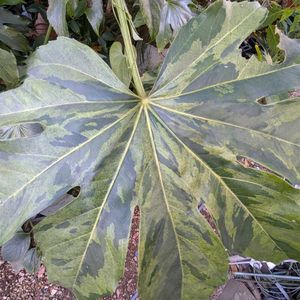 斑入りヤツデの花が咲き始めました。