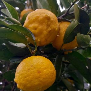 ユズ 裏庭のユズが色付いてきたので少し収穫して来ました。ユズジャムを作ってみます。 葉っぱの大小並んだ形は単身複葉と言うみたいです͛.*🍃