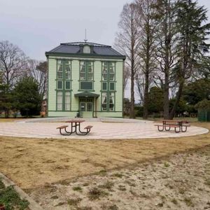 行田市の、水城公園。 旧忍町信用組合店舗 公園東側に、移築されて きました。 今は、カフェに。 建物が、かわいいな。