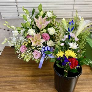 百箇日のお供えのアレンジ 昨年相次いで亡くなられた音楽関係🎹🪘グループのご家族様達へ…🙏