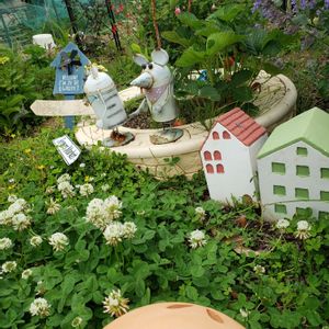 子トトロさんが庭の野原にいました🍀☘️シロツメグサの花が咲いてきました🍀☘️いっぱい咲いたら、花冠を作りたいな☘️🍀今日はいいお天気です🍀🍀🍀🍀 🏷毎月16日はトトロの日 参加させてください🍀🍀