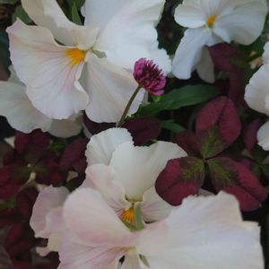 パンジーももこの間からクローバー ティントワインの蕾がのぞいてます☘️ 🏷️金曜日の蕾たち 参加させてください🎵