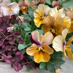 年末に寄せ植えした名もないビオラ🤎 お洒落さん発見です😊💜 このビオラは時々とても素敵な色が出てくるのでお気に入り✨とても90円とは思えません✌️ありがとうございます🎶 春は始まったばかり🌸まだまだ頑張ってもらいます🥰