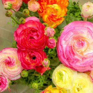 カラフル&大輪&豪華❗️ 幾重にも重なる花弁が特徴のラナンキュラス入荷しています😊 3寸ポットの小ぶりな苗もあります🌱