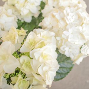 入荷したアジサイアイスベア❄️ しろくまアジサイと呼ばれる純白のアジサイです🐻 しろくまの毛並みのようなふりふりした可愛いらしい花弁を持っています🌼 花房自体は小ぶりですが、たくさん房をつけるので華やかになります😊 清楚でどこか品のある素敵なアジサイです✨✨