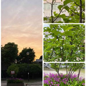公園のサクランボ🍒・・・・無い⁉️🫢 帰宅時の公園。夕焼けが綺麗でした。 そういえば、そろそろサクランボが赤くなる頃と思って近づいたら、全部無くなってました😅 ちょっと試食しようと思っていたのに、残念🫤 テッペンまで綺麗に無いので、鳥が食べたのかな🤔 サクランボの木の下には紫蘭が沢山咲いていました🎶