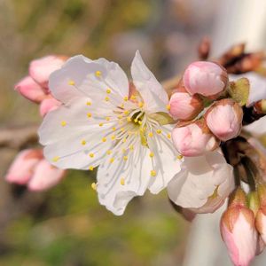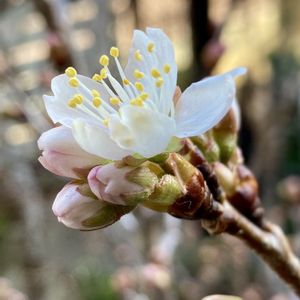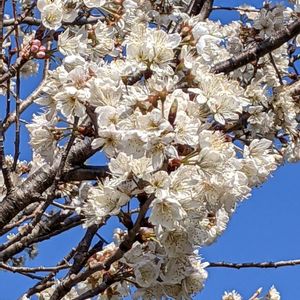 散歩していたら、梅ではなく、河津桜でもない白い花をつけた大きな木を発見。 お家の方に尋ねたら、サクランボの🌳とのこと。蕾は薄いピンクですが、咲くと白い🤍ですね~🥰 🏷白い水曜日♡