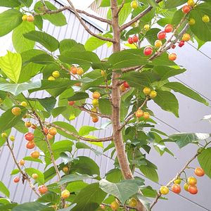 職場の木。 サクランボ食べられます💓 毎年沢山の実をつけますが、今年は今までより大きくて甘みがあり、美味しいです😊 実が沢山あるのだけど、手が届かないので、食べられるのは下の方だけ😂 大抵鳥さんのお腹に・・・🐦🎶 近所で、もしサクランボの木が生えてきたら、元はここのサクランボかも😅 連休中の息子の結婚式は、山口県なので、そろそろ荷物をまとめねば。 雨かも😅 晴れますように😊 私は山口県の道端の草を見てきたいです💕 愛知県と違うのもあるでしょうか?