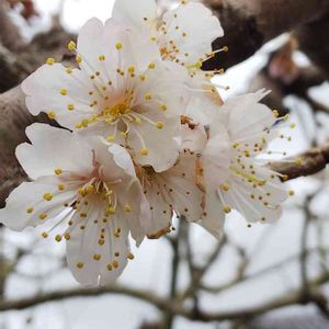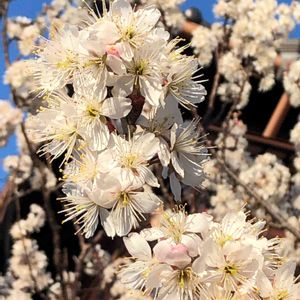 お花屋さんで見つけたこの花🌼🌸 梅のようだけど樹の肌が桜のようだ🤗 まるで長いまつ毛を持つ女性のような長いおしべが特徴的だ🤗🌸 サクランボがなって食べられるという🤗🌸 「君の名は」