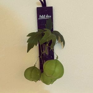 風船カズラの実がついたので、 一輪挿し(?)に飾り付け。 残りの実から種は取れるかな?