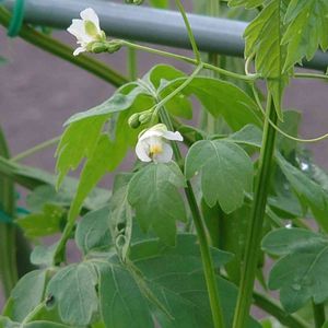 風船カズラのお花 どんどん上に伸びてます ぶら下げているので、理想は何処かで枝垂れてくれればな🤭