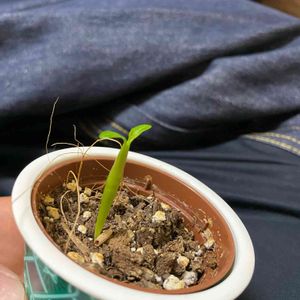アデニウム君。発根! ちょーど1週間ですね。 数時間だけ水に浸して土に乗せて、この枯れ枝みたいな種、出てくるのか? って思ってたら無事カビもせず、ぷくぷく膨らんで発根したのでひと安心。🌱 成長が楽しみ💁🏻♂️