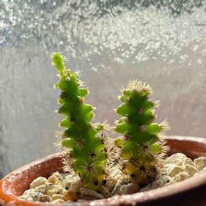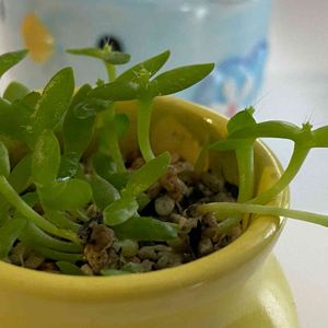 プチっと切って、いただいたミセバヤ。 すぐに根付いてくれたのですが、去年は放射線状…には程遠い、オバケのQちゃん(懐かしい😆)の頭か⁉️と思うほどしか拡がらず…。 そして今年。 こんなに芽生えてます❤️ 一つ一つ、とてもかわいいです💕