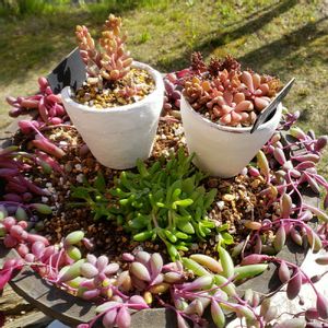 こんにちは〜 昨日のパシフィコ横浜のリエールフェスティバルで、いちかわふぁーむさんのレジのお手伝いをしてきました。 バイト代も出たのですが、それとは別に、好きな苗12個をいただいていいということで… ただし、お客様が買った後なので、残っている中からですが。 私が目をつけていたレアセダムは、マイナーなので残っていました😆 同じ種類を2個もらったりしたので、全部で7種類。 このうち、私がまだ持っていないのは4種類でした。 ★シノクラッスラ属 立田鳳(たつたほう) 別名天竺 ★グラプトベリア属 オリビア ★セダム属 ステノペタルム バタンディエリ 以下はすでに持っていますが、少ないので足すことに。 スパイラルステアケース(グリーンペット) タケシメンシス 森村万年草 森村万年草はいっぱいあるのですが、うちにあるのは名無しでいただいたものなので、それと同じものなのか検証のためにゲットしました。 ちなみに、森村万年草という名前で流通している多肉は2種類あります。 今回ゲットしたのは、たぶん本当は森村万年草ではなく、メノマンネングサだと思われるものです。(マンネングサの研究者の方に聞いた話です) お手伝いの様子はみどりのまとめにあげたいと思っています。