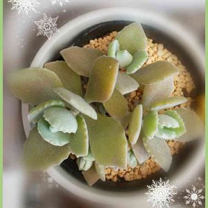 ついこの間『あけおめ』をしたと思ったら、もう3月…(^_^;) 雑多な日常に追われて、昔に比べて一日一日を大切に生きてない気がする。 て、真面目かっ!!(・ω・) まあ、多肉ちゃんの調子に一喜一憂してお天気やら、気温やらを気にしている内は、『その日』をしっかりと意識しているのだろうから、いいか!? という感じ(笑)。 今日はしとしととした雨☔ てか…『しとしと』と入力して、真っ先に出てくるスマホの変換候補が『使徒使徒』となる私は、確実にヲタク(。-∀-) 長期予報を見る限り、暫くはお天気の移り変わりが目まぐるしく、三寒四温、菜種梅雨と言われるように雨の日も多そう。 まあ、確実に春に近付いている証拠なので、多肉ちゃん達の季節になるのかと思うと楽しみで仕方ない(*ˊ˘ˋ*)。♪:*° で…今日の子は『ミロッティ』さん❤ バックスキンのような質感で、思わず触ってみたくなる(*ˊ˘ˋ*) 成長点付近のペパーミントグリーンがとってもcute✨ タニパトしていると、こんな感じで何気に成長点が育っている子が沢山居て、春の訪れをホンワカと感じて嬉しい( ⁎ᵕᴗᵕ⁎ )❤︎