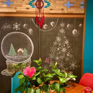 南側のベランダにいるハイビスカス まだ花が咲いてます 外だと1週間花が落ちません 部屋に入れると 途端にポトリと落ちてしまう どっちに置いとくほうがいいのか よくわからんー クリスマス黒板アートと一緒に 夏と冬のコラボ(笑) 2017年に12月中旬