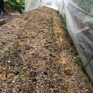 人参、間引きました。 人参の間引きは、小さいうちは 競い合わせた方がいいのので、 二回、三回、と分けて 間引きをします。👍👍👍