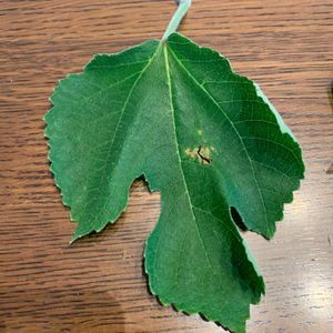 葉っぱの切れこみが気になるシリーズ(^_^)。 花も実の時期も終わっている葉ですが,葉の形の特徴から,カジノキ,と思われます。桑だと思っていましたが,コウゾ,もヤマグワも近い種類で,しかも,葉っぱのキレコミがいろいろ変化する異形葉性をもつ,とのことです。この枝は,下から上まで,この形の葉っぱばかりでした。