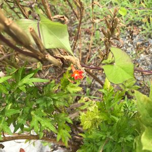 マルバルコウソウ ひょうたんのつるにからみついて、2階のベランダまでやってきた!