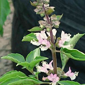 バジル レッドボウルに 可愛い小さな花が咲いてます。 葉の裏が少し赤紫色 オリーブオイルと一緒にパスタに😋