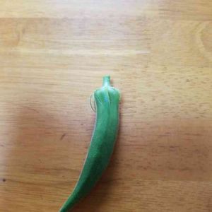 オクラ収穫 9センチになって 待ちきれず …まだ、早かったかな😅 夕食に 頂きます