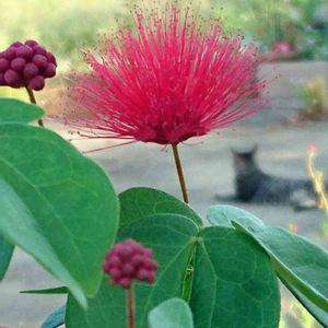まる葉ネムノキ 我が家で2年目の夏を迎えてます。 遠くに😹✨💦 こっそりマルちゃんが入り込んでます(^^;