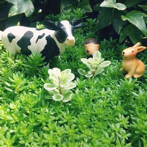広がったセダムにピックをさしたらミニチュア牧場ができちゃった!かわいい~💕 こぼれだねでついたセダムもいい感じ🎶