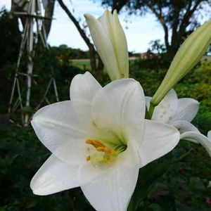 今朝、台風で根元から倒れてました💦折れてなくて良かった~😌 立て直し完了! もっと短く剪定した方がいいのかな~?