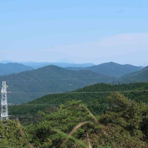 先に紹介した五葉城址からの富士山🗻展望写真を。見えるでしょうか?まだ暑く遠方はくっきりとは見えませんが中央奥に薄く富士山🗻が写っています。スマホ横向き画面にするとわかります。冬になると白い頂きになり、特に冷え切った雲のない天気時には綺麗に見えます。遠い愛知県からですので見えただけでも感謝です。🐶😄 なお続いて富士山🗻ズームアップ写真も紹介します。お楽しみに!✌️