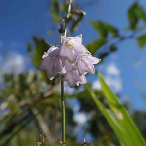 何度紹介しているツリガネニンジン、青空をバックに下から覗いてみました。ベルのような形です。色も白いものから紫色濃いものまで個体差があります。🌼 なおこういう撮影は、デジカメのチルト式液晶モニターですと確認しながら撮影しやすいです。🐶✌️